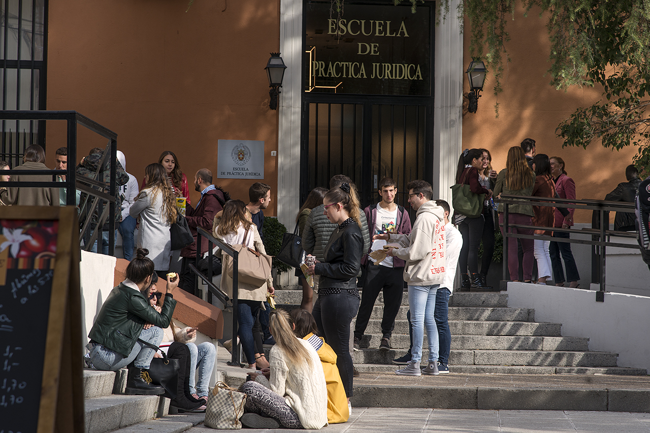 La obligación que se marca a las universidades de impartir másteres de acceso a la abogacía hace que las escuelas de práctica jurídica pierdan un gran número de alumnos. Desde la Facultad de Derecho, según cuenta Almudí, el hecho se ve con preocupación. " Yo he sido vicedecano de Posgrado con Ricardo Alonso durante 3 años antes de ser director de la Escuela. La Facultad desde que entra el Plan de Bolonia y hay que hacer el máster de acceso a la abogacía se tiene que preocupar también por colocar a sus egresados. En las reuniones lógicas que mantenemos con ese fin entre el Decanato y los principales despachos de Madrid, nos damos cuenta de que los despachos empezaban a ser sensibles a un máster de la abogacía, pero al mismo tiempo demandaban una especialización. Al hilo de esa necesidad -continúa el profesor Almudí- se nos ocurrió ordenar dentro de la Facultad los títulos propios con denominación de máster que se ofertaban y articular una oferta conjunta de la Facultad, que se instrumentó a través de la Escuela. Nos encontramos con que otras universidades de la periferia habían creado centros de formación en el centro de Madrid, y nos pareció que era una buena idea utilizar las instalaciones de la Universidad de la Escuela también en pleno centro de la ciudad para poder ofertar esas titulaciones".